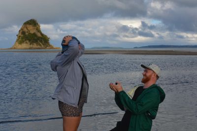 Join the newlyweds for a swim, a coffee, and snacks at the beach!